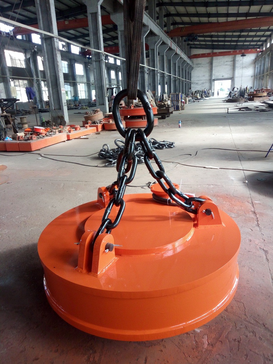 1. It adopts a special magnetic circuit design which has large air space and magnetism density. It is made of aluminum wire or copper wire and the coil protection plate is made of the rolled high Mn steel plate that has good performance of wear-resistance and heat-proof. It also has the characteristics of light weight, low power consumption,high lifting capacity and long serving life.